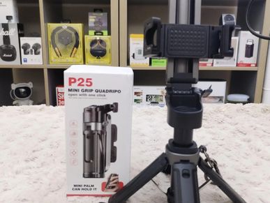 The P25 Mini Grip Quadripod is a compact tripod and handheld grip designed for smartphones. It includes a Bluetooth remote for easy photo and video capture. Lightweight and foldable, it’s perfect for vlogging, selfies, and travel content.
