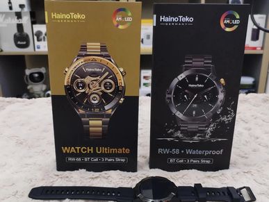 The HainoTeko RW-68 Smartwatch features a premium AMOLED display, Bluetooth calling, and a stylish luxury watch design. It supports fitness tracking, heart rate monitoring, notifications, and comes with 3 interchangeable straps for versatile styling—perfect for business or casual wear.