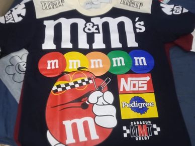 A bold streetwear t-shirt featuring an eye-catching M&M’s racing graphic with colorful candy icons and motorsport-inspired elements. Designed for casual wear, this shirt offers a relaxed fit and vibrant print that stands out in any outfit. Ideal for street fashion, daily wear, or collectors of graphic tees.