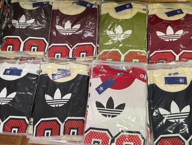 This Adidas-inspired graphic T-shirt features bold prints and a comfortable cotton blend fabric. Available in multiple colors, it’s designed for everyday wear with a relaxed fit that pairs easily with jeans, shorts, or joggers.